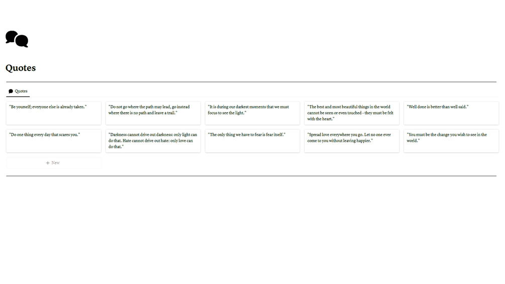 Transform your Notion space with our Quotes Template! Elevate each day with curated wisdom, motivation, and creativity. Effortlessly organize and reflect on inspiring quotes. Upgrade your workspace for enhanced productivity. Elevate your Notion now!